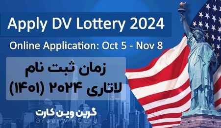 برنامه لاتاری گرین کارت امسال (2022 میلادی و 1401 هجری شمسی) ، لاتاری 2024 آمریکا یا DV-2024 نامیده میشود. زمان ثبت نام لاتاری 2024 آمریکا از 5 اکتبر 2022 ( 13 مهرماه 1401) شروع خواهد شد و مهلت ثبت نام در لاتاری 2024 آمریکا تا 8 نوامبر 2022 ( 17آبان 1401 ) خواهد بود. معمولا سالی که در انتهای نام برنامه های لاتاری آمریکا ذکر میشود، نشانگر زمان بسته شدن پرونده آن برنامه است. به طور مثال، تاریخ ثبت نام لاتاری 2024 آمریکا در سال 2022 است، تاریخ اعلام نتیجه لاتاری 2024 آمریکا در سال 2023 است و تاریخ پایان رسیدگی به پرونده برندگان لاتاری 2024 آمریکا در سی ام سپتامبر 2024 است. در این مطلب قصد داریم به سوالات مربوط به تاریخ ثبت نام لاتاری گرین کارت آمریکا در سال 1401 و ابهامات مربوط به آن پاسخ دهیم.مجموعه گرین وین یک شرکت گرین وین در زمینه مهاجرت به آمریکا است و متخصص در اموری همچون ثبتنام لاتاری ، مشاوره لاتاری و اجرای پرونده اخذ ویزای برندگان لاتاری ، اخذ ویزای توریستی آمریکا و اخذ ویزای تحصیلی آمریکا (بدون مدرک زبان و فقط با مدرک دیپلم) و مشاوره برای اخذ اقامت دائم آمریکا است. از همین الان میتوانید از طریق فرم ثبت نام لاتاری گرین وین به صورت آنلاین در لاتاری 2024 آمریکا ثبت نام کنید یا از طریق سامانه دریافت وقت حضوری ، وقت ثبت نام حضوری لاتاری در دفتر موسسه گرین وین را دریافت کنید. در صورت نیاز برای تماس با کارشناسان موسسه گرین وین میتوانید با شماره 02148406 تماس حاصل فرمایید.