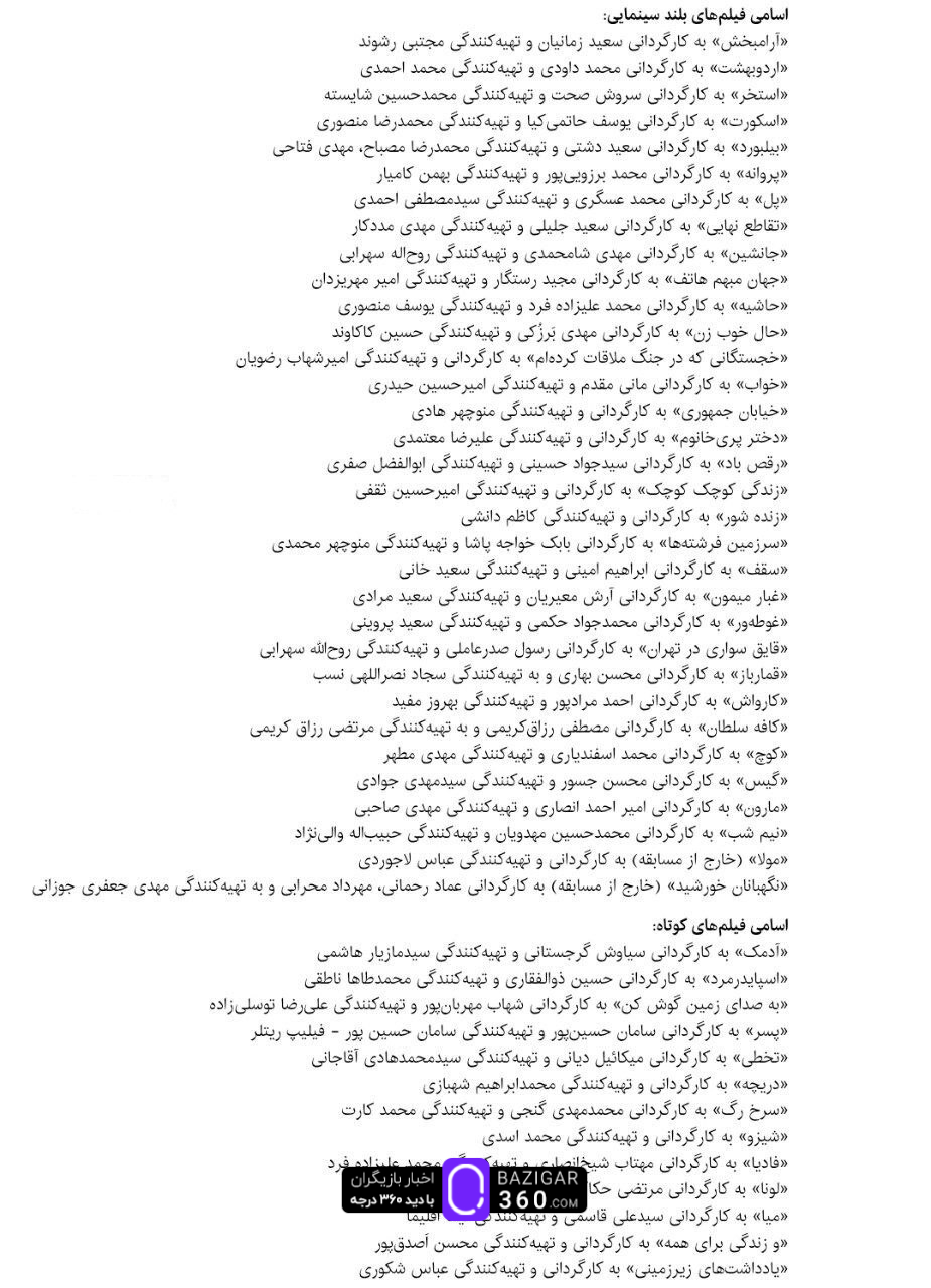 فهرست کامل فیلمهای راهیافته به فجر ۴۴